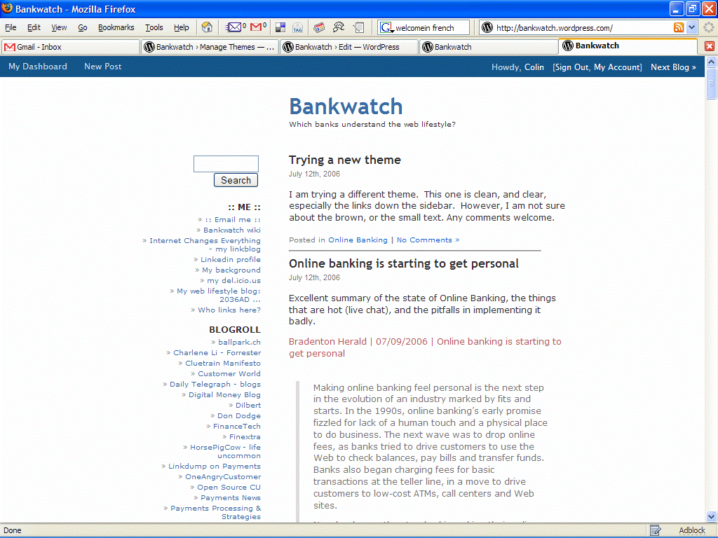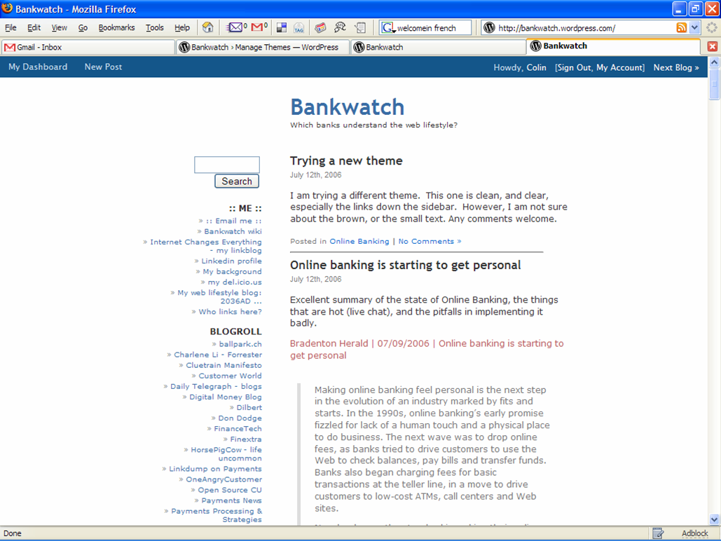 I am really torn, so went back to the old one. I liked lots about the ‘silver is the nextblack’ theme, but there were some shortcomings, such as small font size. In the future perhaps the hosted WordPress system will allow some modifications to the themes.