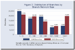 Mid sized Banks with 100 – 500 branches have reduced their network size in the 9 years to 2003, whereas the rest, smaller and larger have increased their branches.