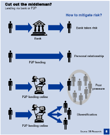 My position would be that Bank’s will lose and be forced out of certain markets by efficient firms – I only base that on sad realities of the past, with examples of Mutual Funds, and Mortgages. I would include Eloans in this category too. With regard to new markets being created, I won’t rule that out. P2P may well pick up lending that may have been handled between family members for example, and some P2P’rs will in fact facilitate that.