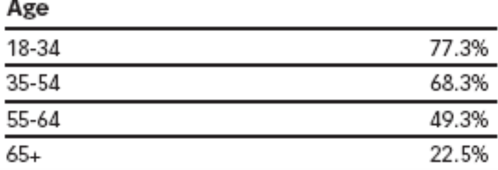 What is more interesting is the Internet penetration levels at different age brackets. This is the best predictor of future Internet usage, and expectation, with close to 80% in the Gen Y category.