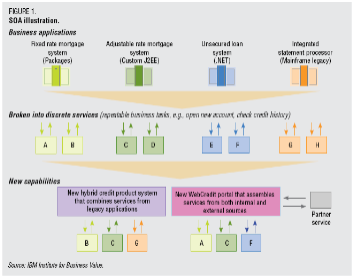 ….. the fundamental concept is really quite simple – and very powerful. It’s that to meet your present and projected business needs, you can turn your software applications into “building blocks” that you can infinitely rearrange, and usually at great speed. It gives you a new way not only to “reconfigure” your business, but to connect to suppliers, partners and customers.