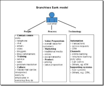 So lets expand the strategic elements of the branchless bank, using a simple people, process, technology model.