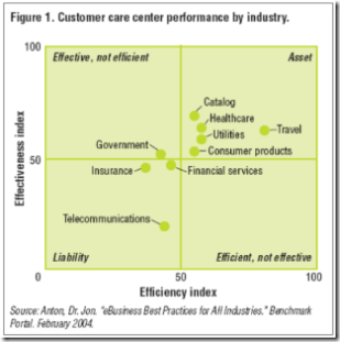 In a rather damning report (dated Dec 2005) on financial services efforts, their Customer Care Centres are seen to be lagging almost all, along every axis, with the exception of Insurance, government, and Telcoms – three hardly known as exemplars. I would suggest that this is partly because they have not made the leap from Call Centre to Customer Care Centre, the second have cross channel implications.