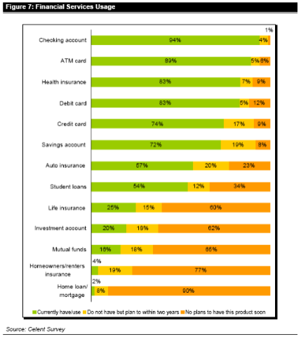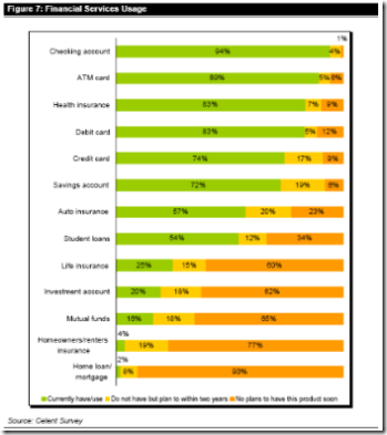 Finally some stats from a Celent 2003 report showing propensity for GenY to use electronic transactions.