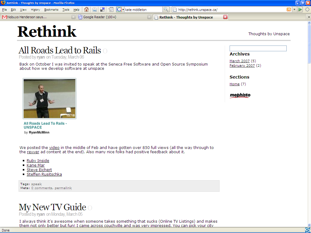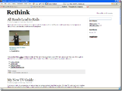 I wanted to introduce this new blog from Unspace, a Ruby on Rails shop in Toronto, that are probably one of the best in North America.
