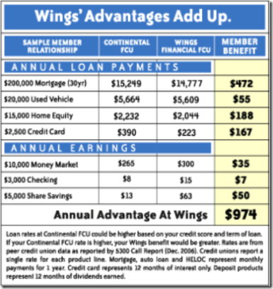 In addition to the unprecedented direct solicitation of Continental’s member-owners,Wings is actually attempting to buy Continental’s accumulated members’ equity dirt cheap. See this data from the 12/31/06 NCUA 5300 Call Report for Continental: