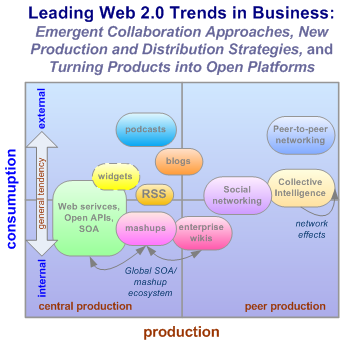 I really liked this diagram which I think Don created. It very nicely aligns web 2.0 tools, with consumption (internal/ external) and production (central/ peer).