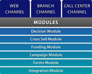 No offense taken regarding our diagram. I completely agree that a consumer-centric view would be oriented quite differently. However, our perspective is specific to the origination of a new account (the 5% you referenced), not the consumer’s interaction with the account once it’s open (the other 95% you referenced). And our diagram is intended simply to reflect a modular architecture in which both functionality (the modules) and deployment channels (Web, Branch, and Call Center) are configurable independently of each other. That’s specific to our application framework, and helps to illustrate for our bank customers how our system can be implemented – it’s not intended to be relevant as a more generalized consumer-centric view of a banking relationship.