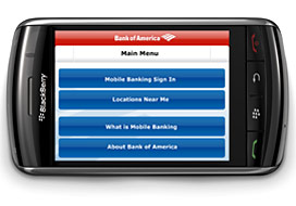 One thing about Bank of America that I like at the moment is that they are just doing things. I covered their use of twitter the other day, but its worth placing in perspective. They are trying many things, including applications specific to the top two business smart phones shown below – iphone and Blackberry.