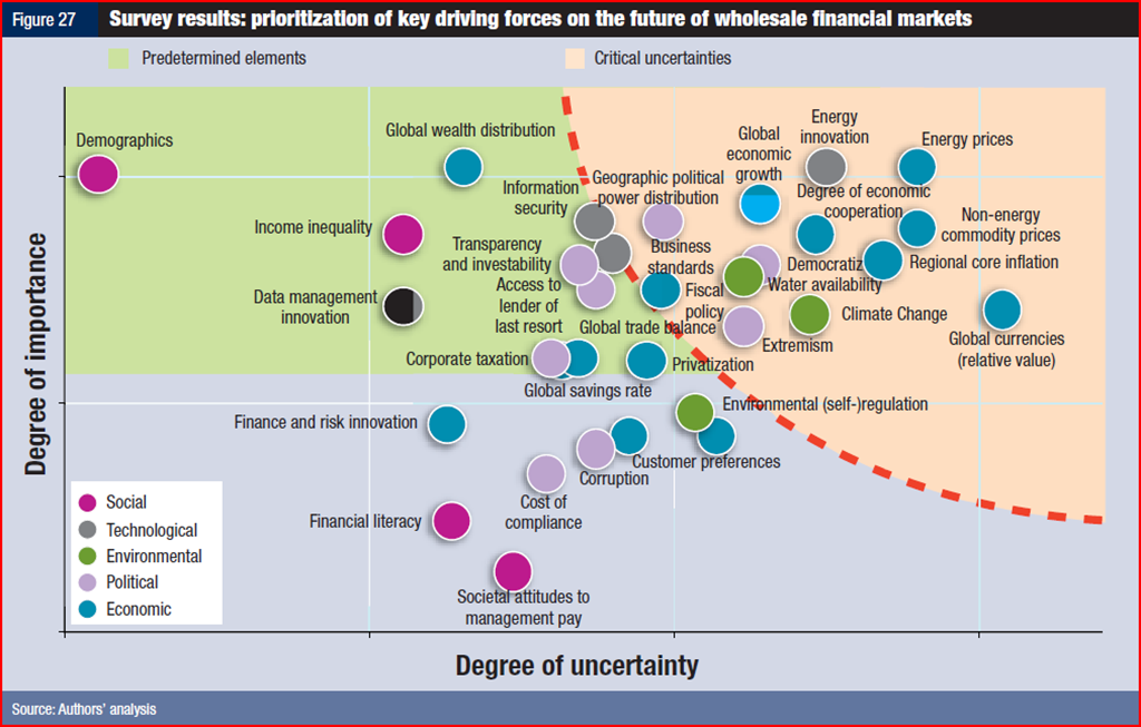 Seven out of the top thirteen uncertainties are economic in nature, with inflation, currency values and growth featuring highly. However the two highlighted overall uncertainties that the report concludes are: