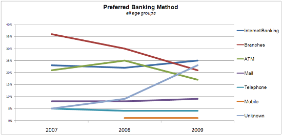 This is a significant survey with online banking leading over branches for the first time in consumer preference. (ht netbanker)