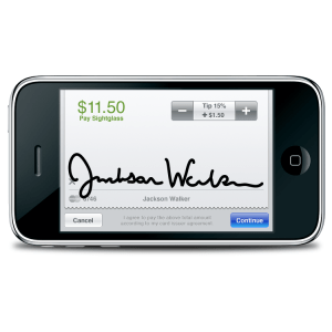 Jack Dorsey and colleagues have announced Square; a mobile payment acquiring terminal that is small enough to fit on a key fob, and works through any mobile phone with an earphone plug. First iteration works with the iphone, but it will work with blackberry and others. The common requirement appears to be a mobile device that accepts 3rd party apps, and has a standard earphone jack. The device and application acquires the data through conversion of sound into data, then transmits.