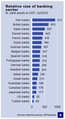 The first slide graphically displays the Irish problem. Remember Ireland guaranteed all banks and thus took on their exposure as sovereign debt. This decision taken in 2009 increased Irish sovereign exposure by an incredible 900%.
