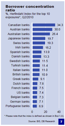 This is an interesting piece from DB Research looking at banks exposure to countries which in Europe is one of the root causes of the problem there.