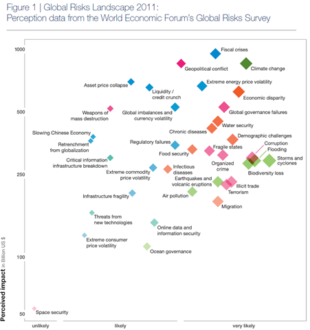 The World Economic Forum which has their annual meting later this month have released their Global Risk 2011 report. Here is he summary from the report, and the full report is a free download here.