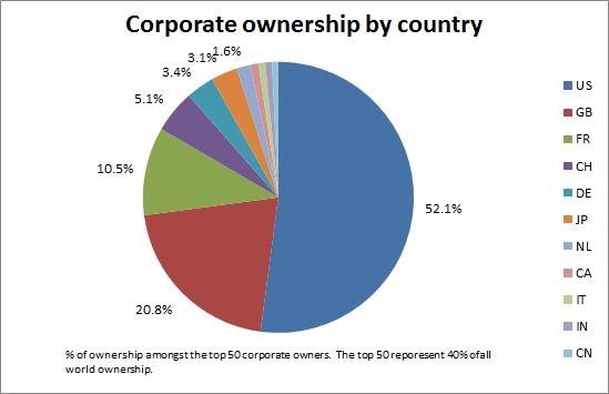 A staggering 97% of ownership within this group is centred in US, UK, France, Switzerland, Germany and Japan. In fact 83% are represented by UK, UK and France.