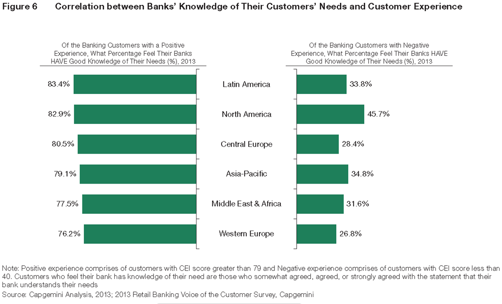 Paris, New York – April 23, 2013 – Within the next six months, ten percent of retail banking customers surveyed globally will likely leave their bank and an additional 41 percent of customers say they are unsure if they will stay or go finds the tenth annual World Retail Banking Report 2013 (WRBR 2013) released today by Capgemini and Efma. To re-build the customer-bank relationship, opportunity exists for banks to become more customer-centric by leveraging vast amounts of customer data and by further developing mobile capabilities to create more personal interactions. The cornerstone of the WRBR 2013 is its extensive customer survey and Customer Experience Index (CEI)[1] which measures perceptions of 18,000 customers in 35 markets about the factors that matter most to them across channels, transactions and products.