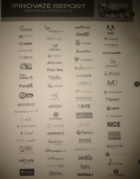 The companies covered in the Q2 2013 report provide an interesting insight into where we are today. Online Banking by original definition referred to Banks. Well the Q2 report has zero banks. Zero.