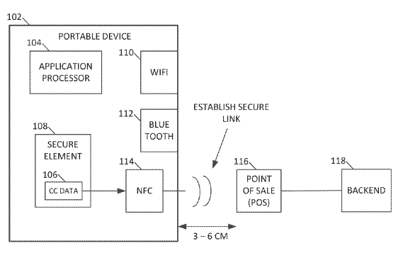 Apple even notes in the patent that NFC "is less desirable for longer transactions," while Wi-Fi or Bluetooth has "more desirable characteristics for maintaining the link over time than NFC."