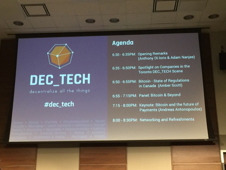 DEC_TECH is hosting a meetup on Bitcoin tonight at MaRS in Toronto.