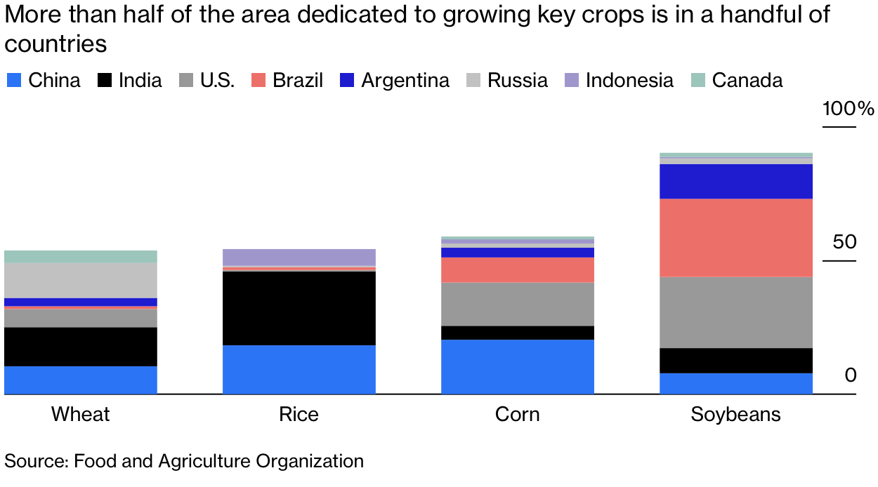 Four of the world’s dominant food-producing countries—China, India, the U.S., and Brazil—also rank in the top ten countries in the world for total geographic land area.25