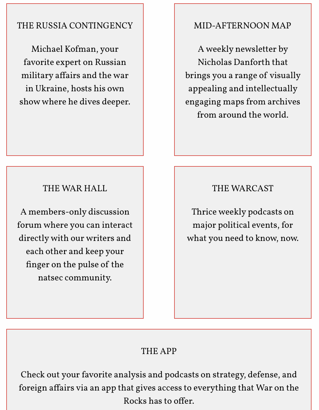 - my goto British Think Tank RUSI “Global Security Briefing” and “Talking Strategy” and
