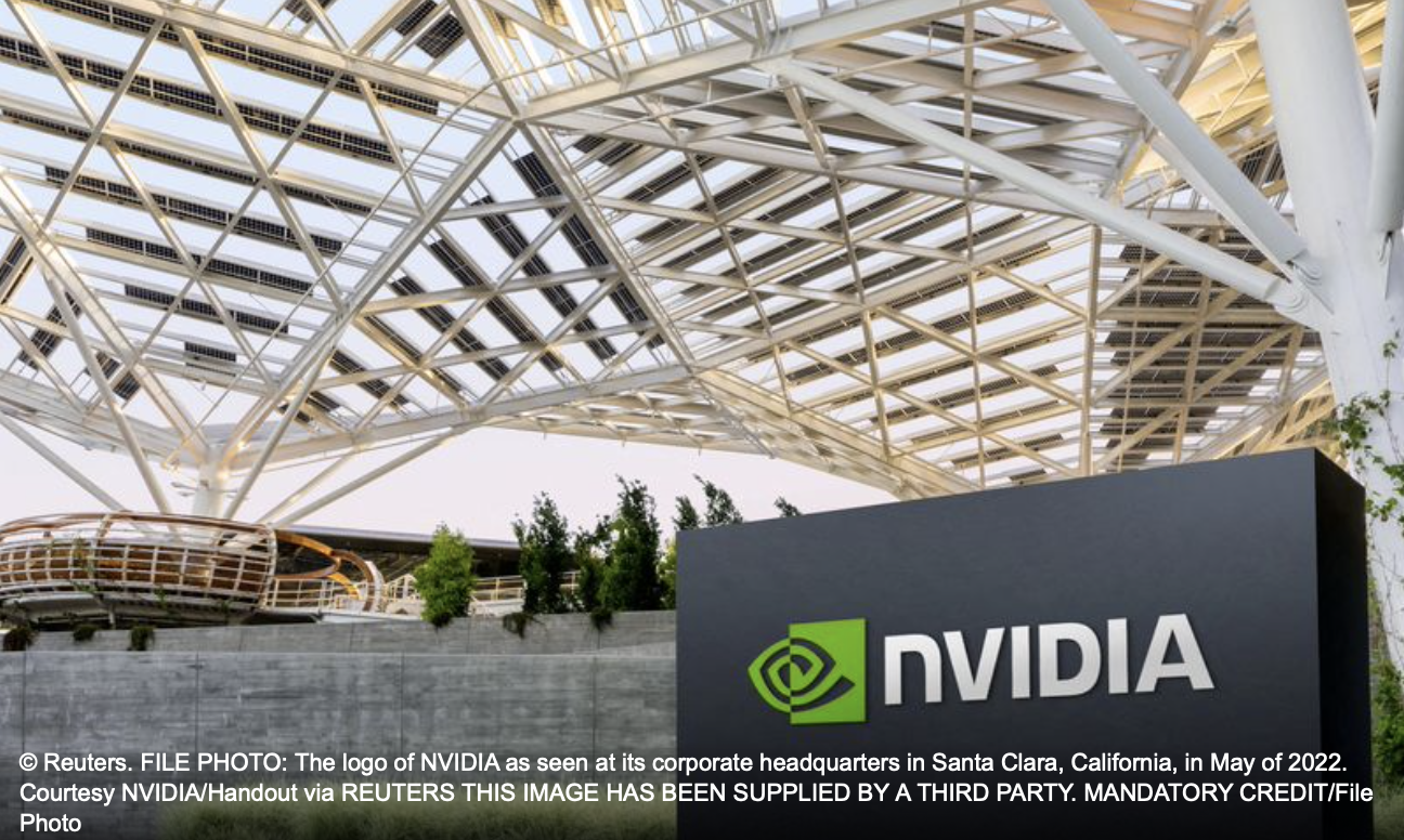 FILE PHOTO: The logo of NVIDIA as seen at its corporate headquarters in Santa Clara, California, in May of 2022. Courtesy NVIDIA/Handout via REUTERS THIS IMAGE HAS BEEN SUPPLIED BY A THIRD PARTY. MANDATORY CREDIT/File Photo
