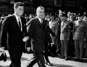 John Diefenbaker, seen here with U.S. president John F. Kennedy during his 1961 visit to Canada, became the country’s prime minister less than a decade after he ran against Joshua Haldeman in a Regina riding. (The Canadian Press)