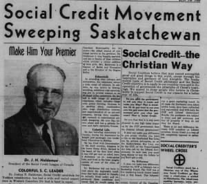 In 1948, Joshua Haldeman led Saskatchewan’s Social Credit Party into the provincial election. The party lost badly to Tommy Douglas and the CCF. (Canadian Social Crediter)