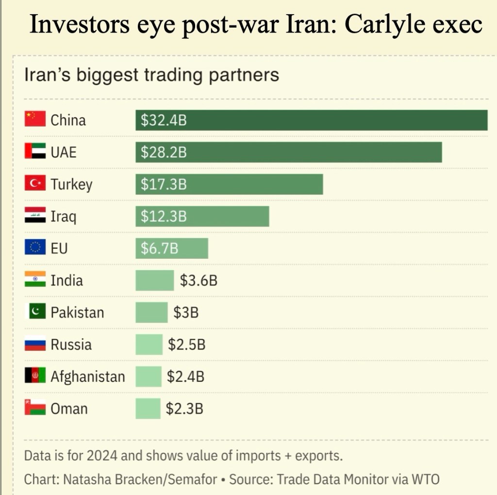 Iran could be the next big global investment opportunity — if and when the war ends, Adm. James Stavridis, the former supreme allied commander of NATO who is now vice chairman at investment firm Carlyle, told Semafor’s Liz Hoffman. “If we’re allowed to have a tiny flicker of good news, we just had it,” he said after Trump announced a five-day stay of his threats to attack Iran’s electric grid, which provoked Iran to vow to strike Middle East energy and water infrastructure. Despite the ongoing military buildup in the region, Stavridis sees two-in-three odds of a negotiated peace that would reopen the oil trade and “avoid cratering the global economy.” Longer-term, he sees regime change from within, which would make Iran an enticing draw for global investors; he compared the outlook for Iran to the reconstruction of South Korea after the 1950s war.